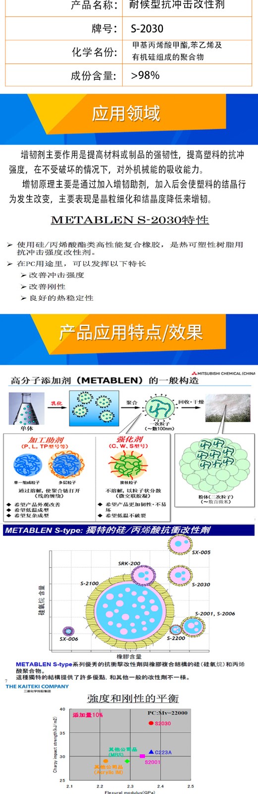 - 三菱增韧剂S2030 耐候耐寒(-50℃)增韧 高效防火 丽阳MBS S-2030 物性表, 三菱增韧剂S2030 耐候耐寒(-50℃)增韧 高效防火 丽阳MBS S-2030 产品参数,三菱增韧剂S2030 耐候耐寒(-50℃)增韧 高效防火 丽阳MBS S-2030 性能表,三菱增韧剂S2030 耐候耐寒(-50℃)增韧 高效防火 丽阳MBS S-2030 出厂报告, MSDS,, 物质安全资料表, UL黄卡,{ SGS报告, RoHS, 食品级认证, NSF饮用水标准, 产品资料, 产品性能, 出厂报告, 原厂原包, 代理商, 热变形温度, 熔指数, 流动系数, 抗冲击性能、冲击强度, 低温韧性、低温抗冲击性能, 熔体流动系数、熔体流动速率, 加工工艺、加工参数、加工温度, 欧盟RoHS 德国FDA 美国FDA 日本FDA