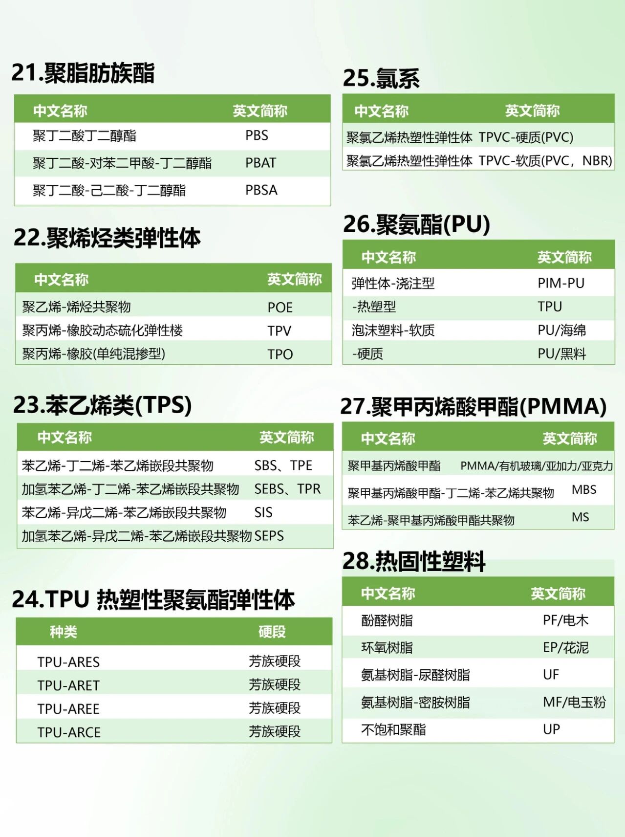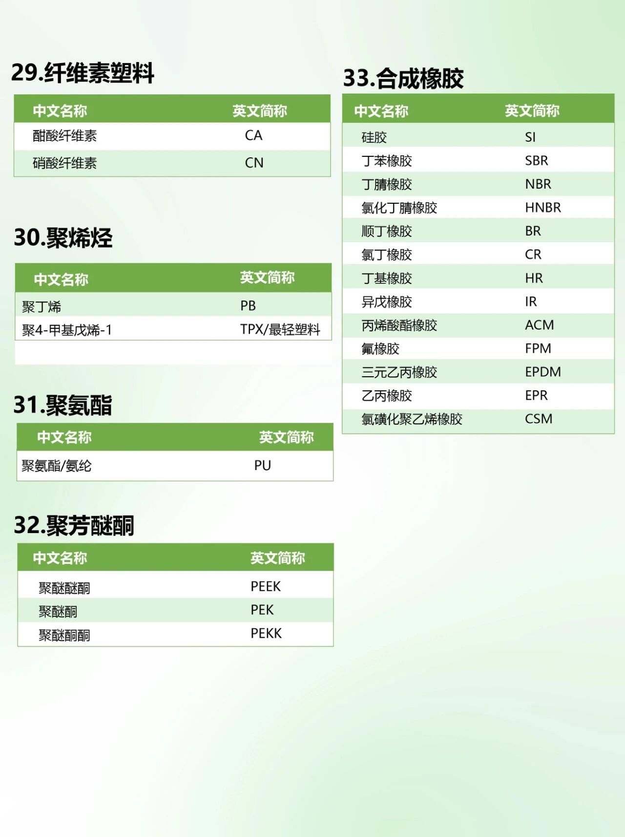 最全高分子材料分类与简称