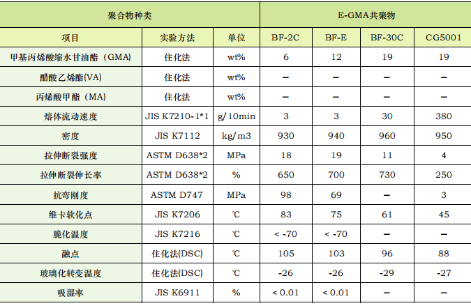 1、乙烯和缩水甲基丙烯酸甘油脂的共聚物(GMA,含环氧基)